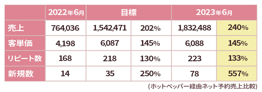 美容業界では口コミが重要とされるため、上記の施策により競合から一歩抜きん出ることができ、新規獲得に大きく貢献しています。