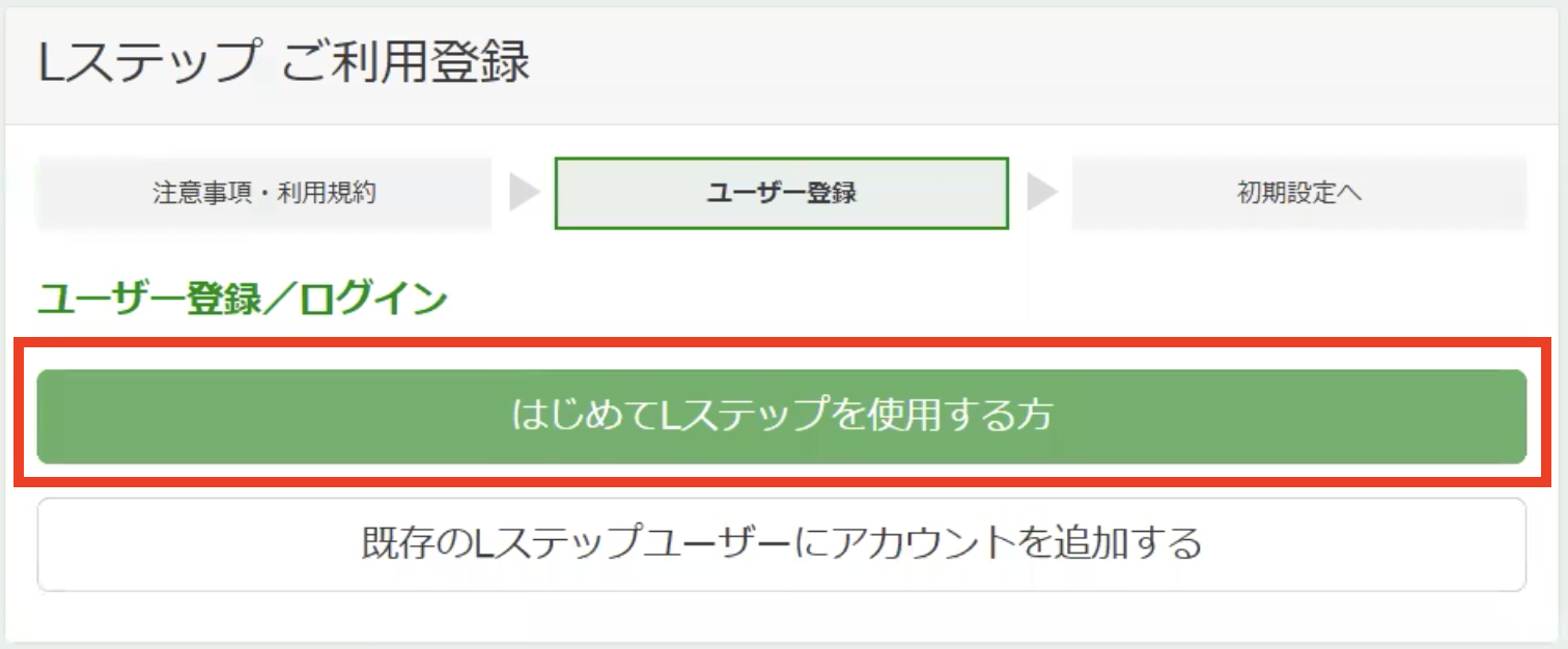 Lステップにお申込後、すぐに画面からLステップのユーザー登録が可能です。