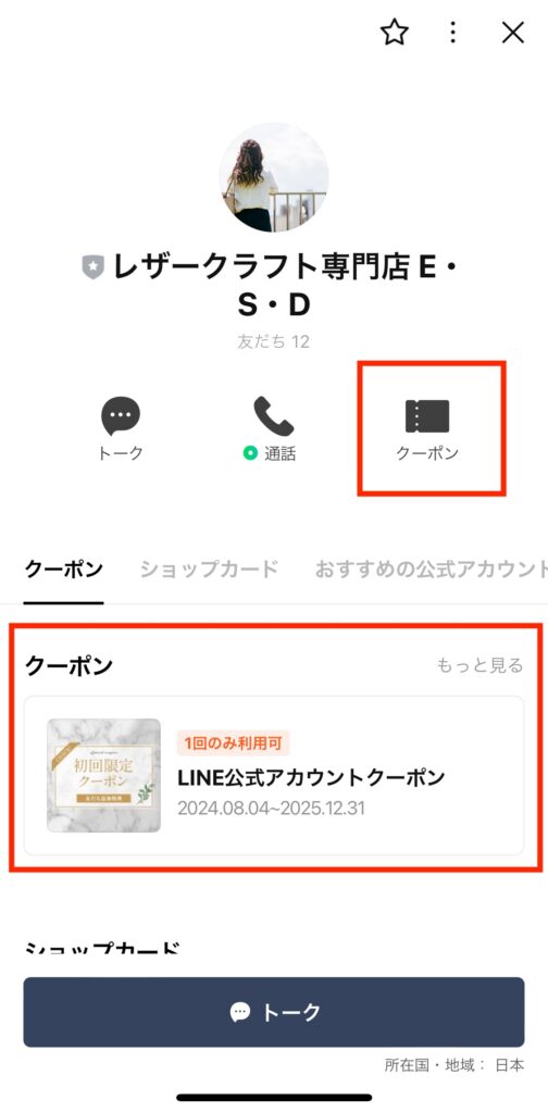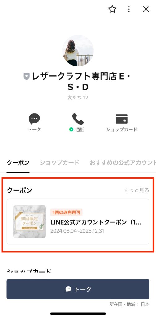 ユーザーがクーポンを獲得すると、LINEクーポンの「お気に入りクーポン」に追加されますが、削除すると獲得先の表示も消えます。