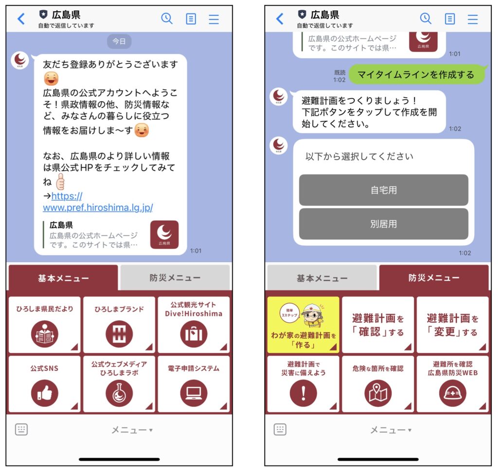 広島県のLINE公式アカウントでは、防災情報や行政申請の電子手続きなど、広島県民に向けて役立つ情報を発信しています。