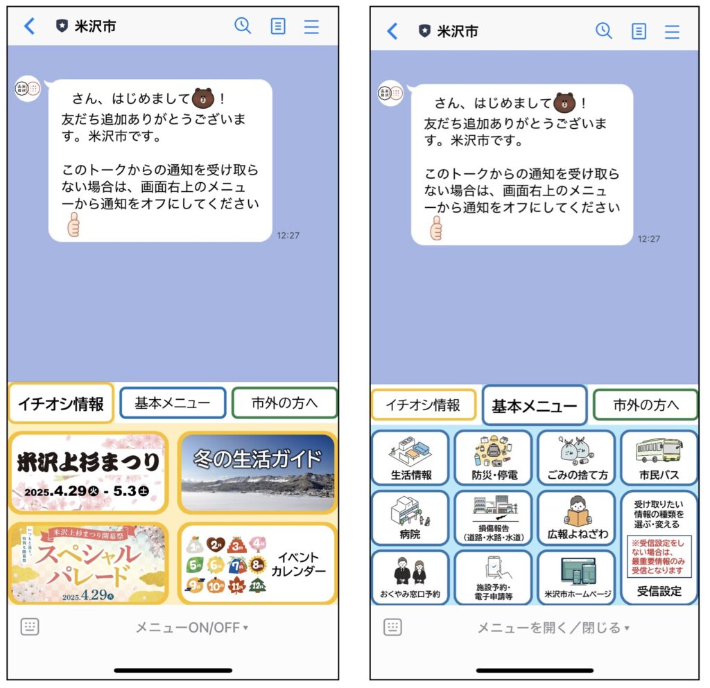 米沢市のLINE公式アカウントは、市民だけでなく市外の人へも情報発信を行っています。
