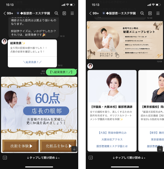 ホームページだけだと、スクールのメニューをあまり見てもらえなかったんですが、Lステップに組み込んでからは結構開いてくれるようになりました。