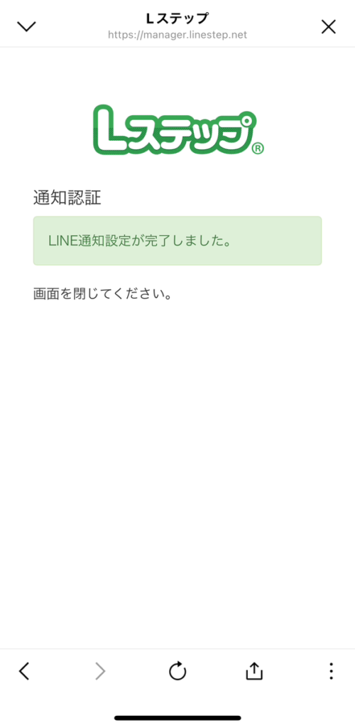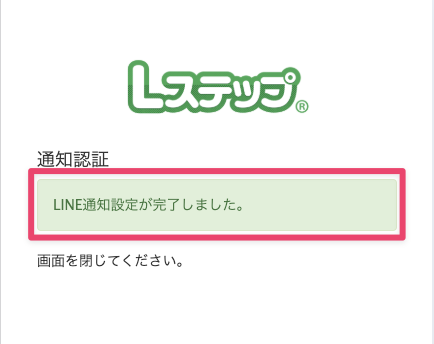⑧「LINE通知設定が完了しました。」と表示されたら設定が完了です。