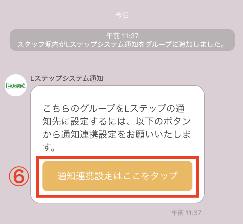 ⑤通知を受け取りたいグループに「Lステップシステム通知」アカウントを招待します。