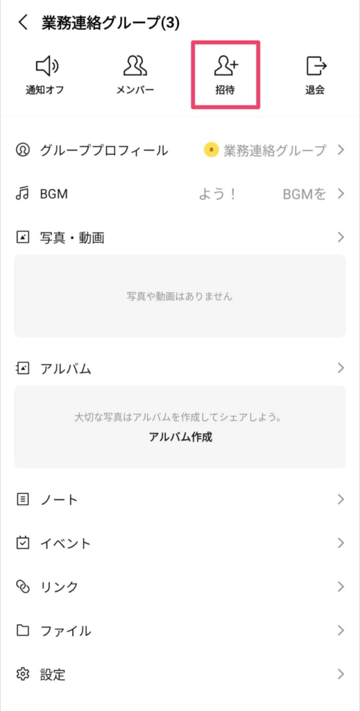 ⑥招待するとグループのトークルームにメッセージが送られるので、メッセージ内のボタンをタップします。