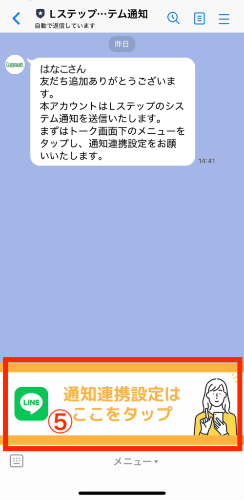 ⑤表示されたトーク画面のリッチメニューをタップします。