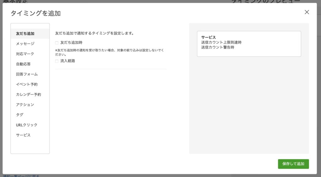 友だち追加があった時、メッセージを受信した時、予約が入った時など、細かく選択できますので、受け取りたい通知を選んでください。