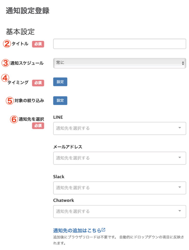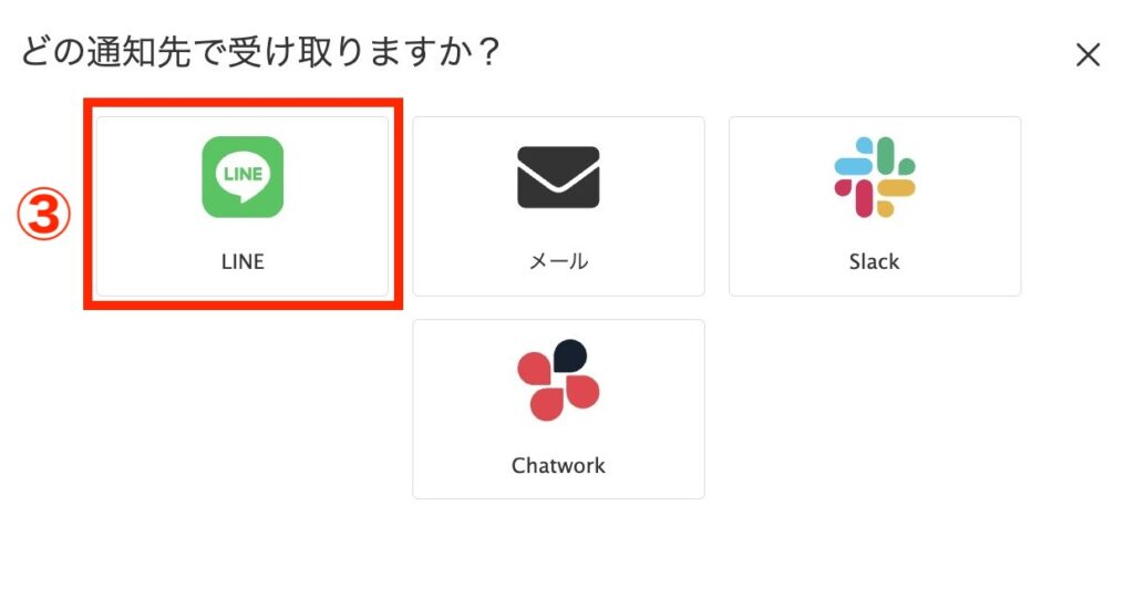 ③どの通知先で受け取るかを選択。今回は、LINEで通知を受け取る流れを解説します。