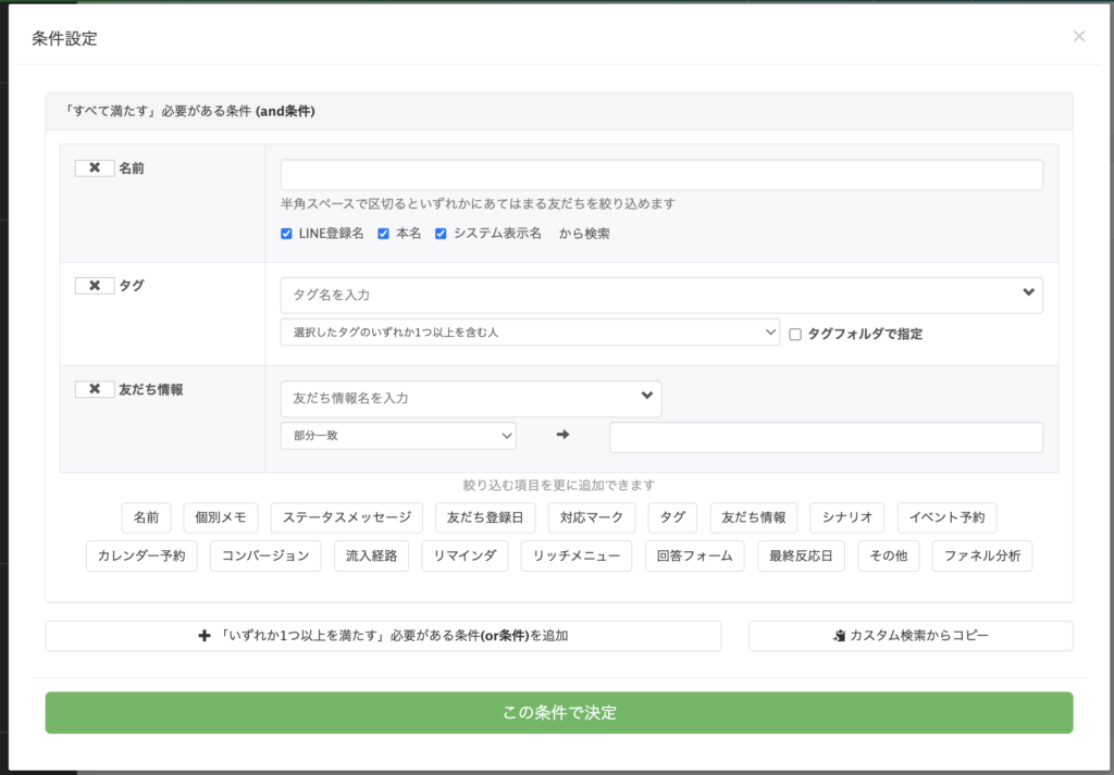 ※「購読中のシナリオ」と「タグ」を使った絞り込み配信ができます。ただし、それぞれ選べるのは1つのみです。複数タグの選択はできません。