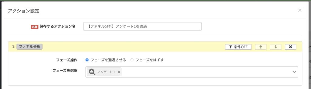 友だちの行動によって自動でフェーズの操作をする場合は、アクション設定を使用します。