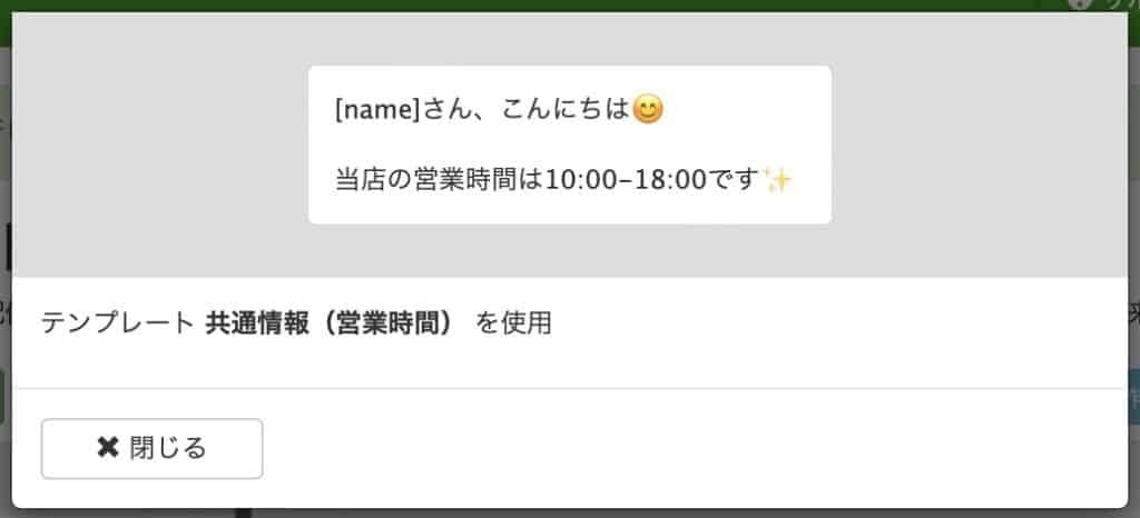 友だちとのメッセージをやり取りする中で、頻繁に使用している定型文を共通情報に登録しておくことでメッセージにすぐ埋め込むことができます。