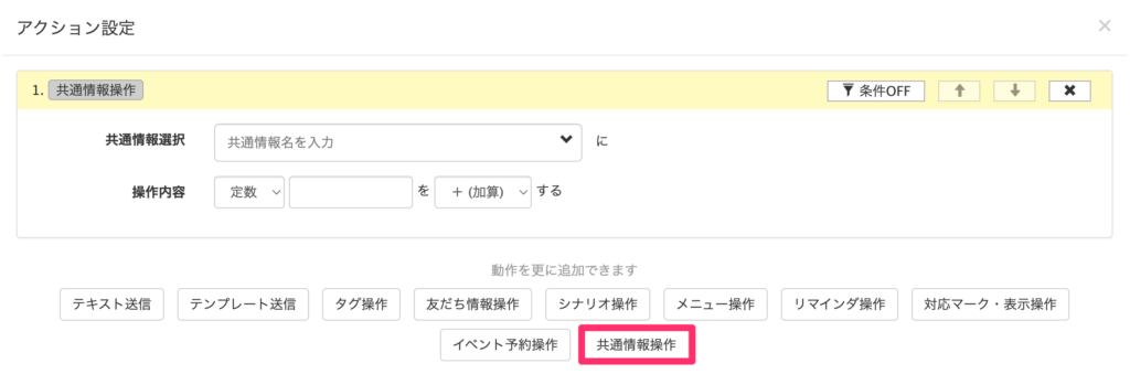 ※今後のアップデートにて、アクション設定で共通情報の数値を増減する設定ができるようになる予定です。