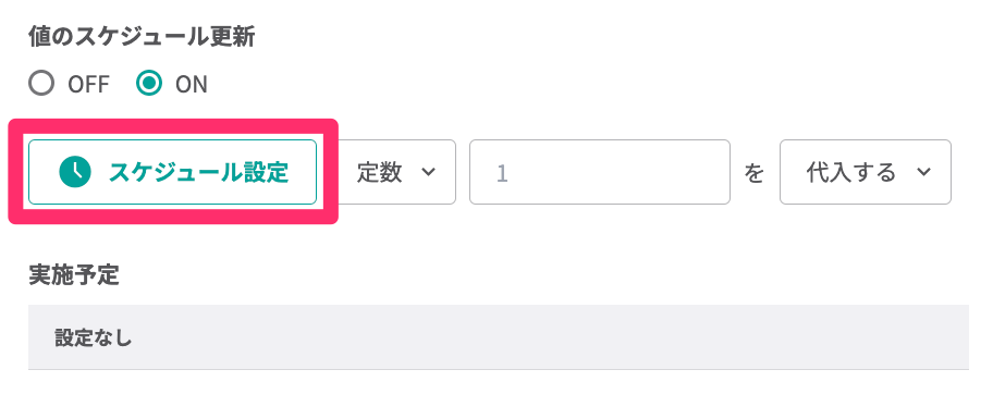 1. 「値のスケジュール更新」をON>【スケジュール設定】をクリックします。