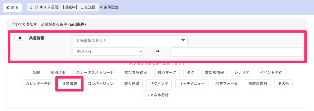 2. 【条件OFF】をクリックして、条件に【共通情報】を選択します。