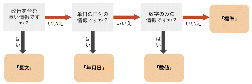 標準 200文字以内の情報を入力可能 URL、営業時間などの記号を含む数字、電話番号やIDなどで0から始まる数字など