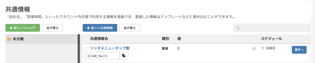 今回は、リッチメニュータップ時に共通情報の値を加算する設定を紹介します。