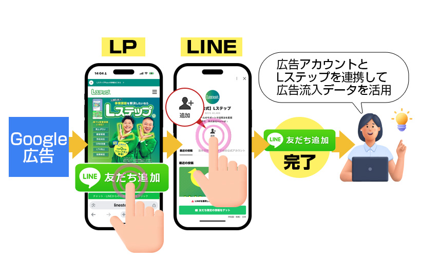 実はLステップを活用すれば「友だち追加が完了した」という情報を、コンバージョンとしてGoogle広告側に反映でき、Google広告側の機械学習が最適化されやすくなります。