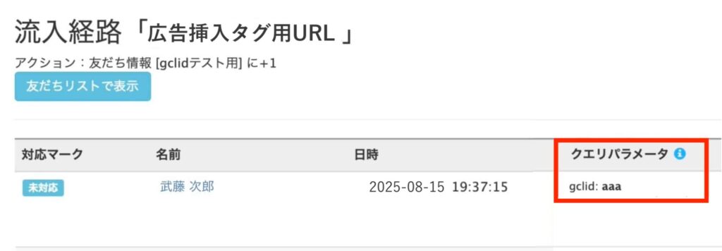 一度ブロックされた友だちが、広告の流入経路URLを踏んでから再度友だち追加(ブロック解除)した場合も、GCLIDは反映されます。