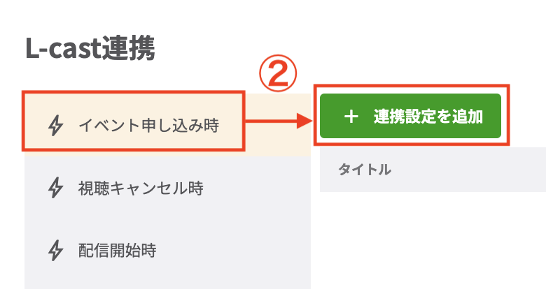 ②「イベント申し込み時」の「+連携設定を追加」をクリックします。