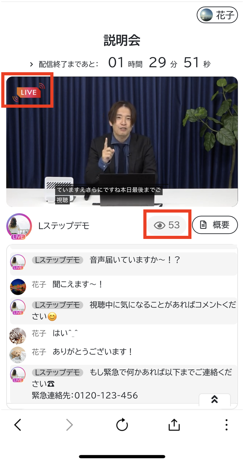 ウェビナー視聴者のコメントに応じてLINEでメッセージを自動送信