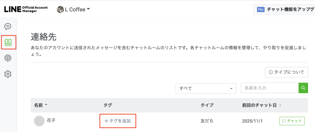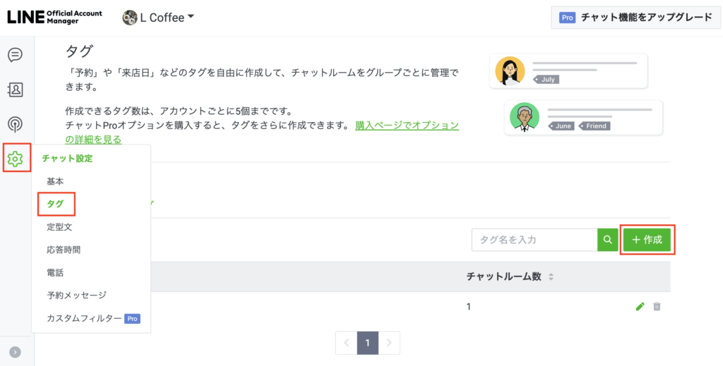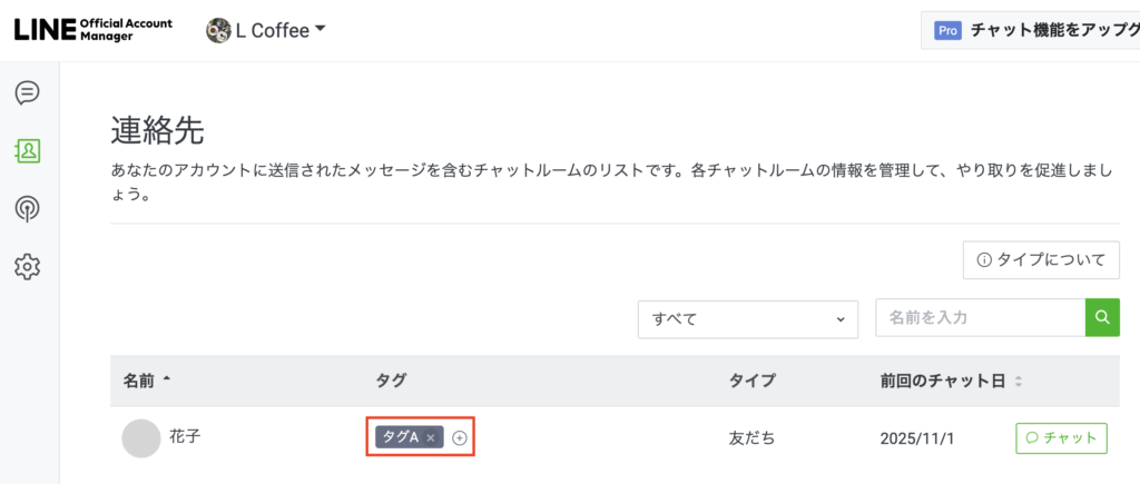 詳細は後述しますが、2025年3月より「チャットProオプション」というオプションサービスがリリースされ、タグの作成数と付与数が仕様変更されました。