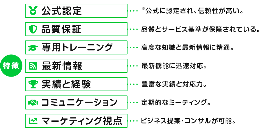 厳正な試験を通過した法人・個人事業主のみが認定されます。