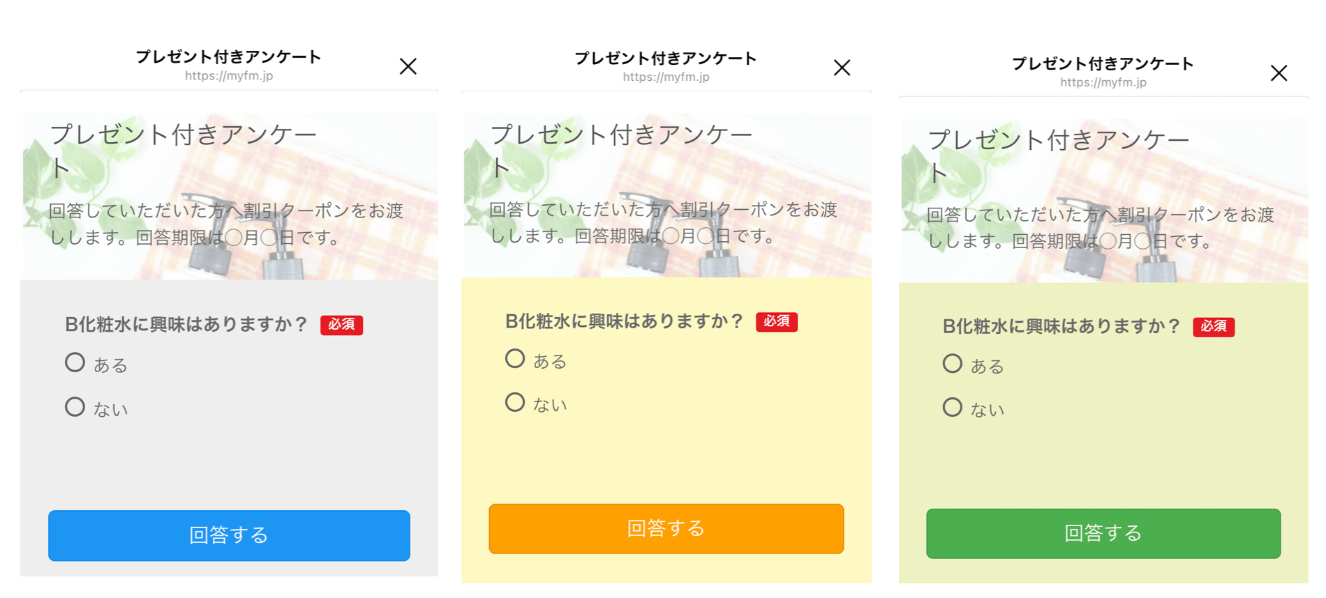 視覚的に魅力的なフォームで回答率アップ 見出しや画像でメリハリをつけ、読みやすさ向上 強調したい部分を目立たせ、訴求ポイントを効果的に伝達 ブランドイメージに合わせたデザインで差別化