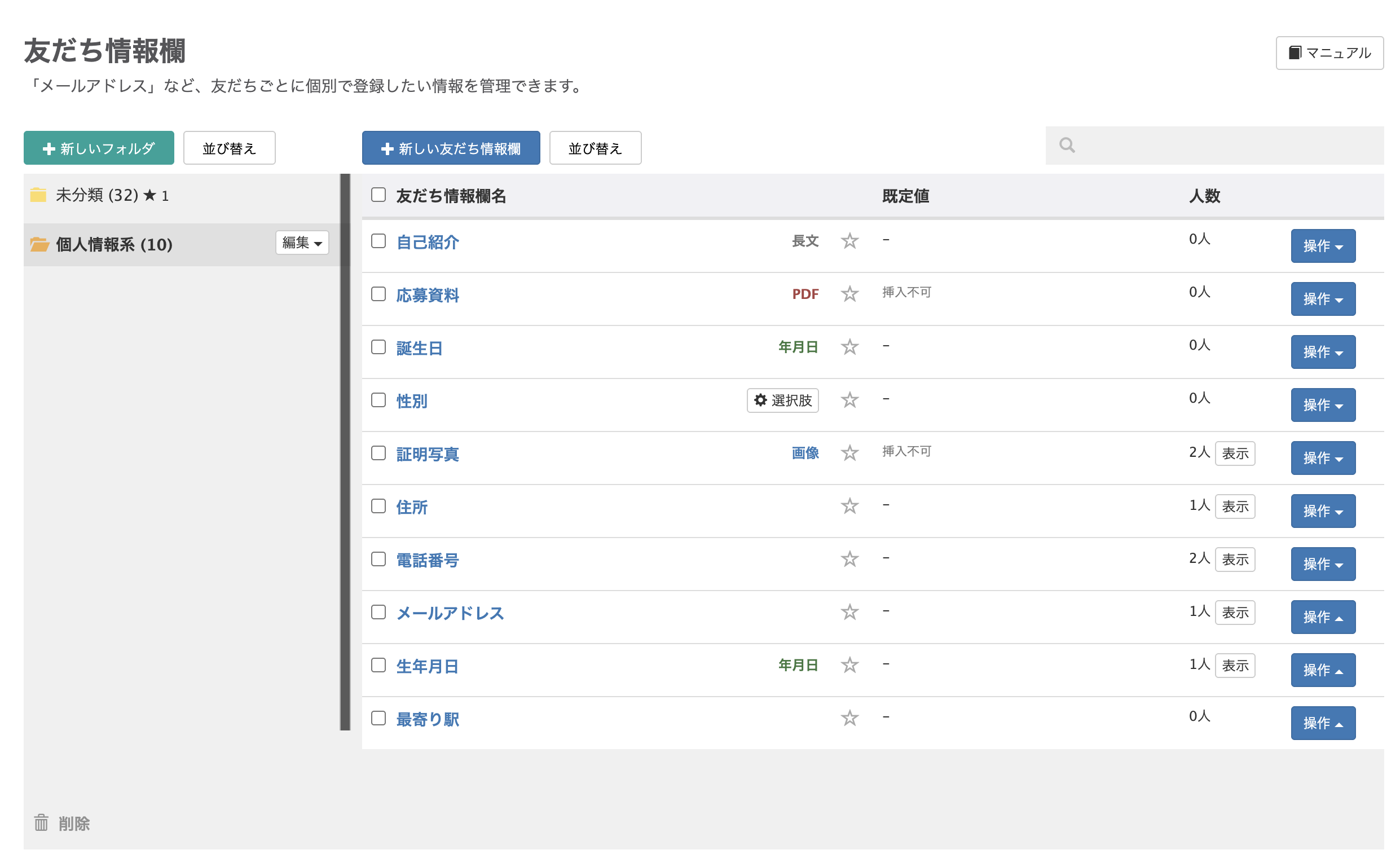 友だち情報管理は、友だちごとに異なる情報を個別に登録できる機能です。