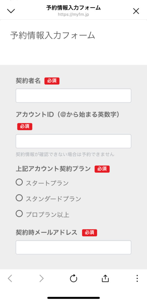 Lステップのご契約者名やアカウントIDを入力し、送信します。