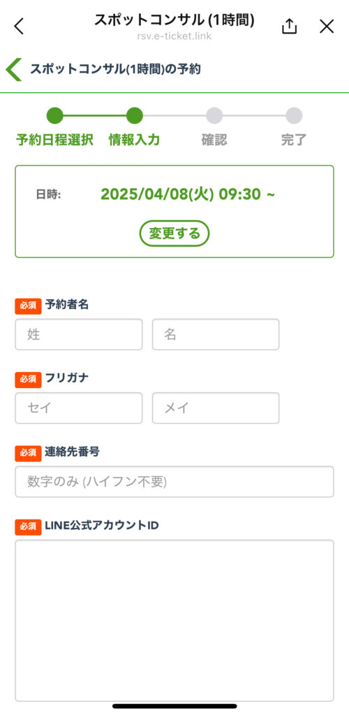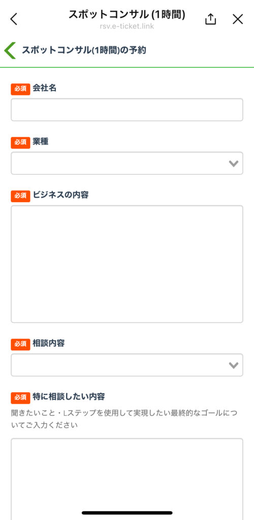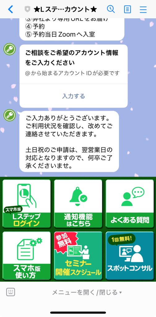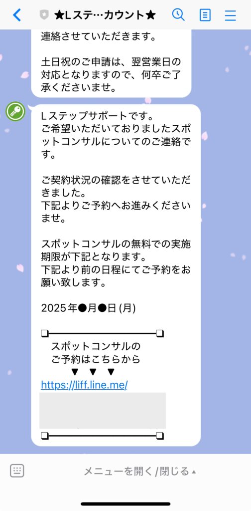スポットコンサルは、Lステップの管理画面から申し込みが可能です。