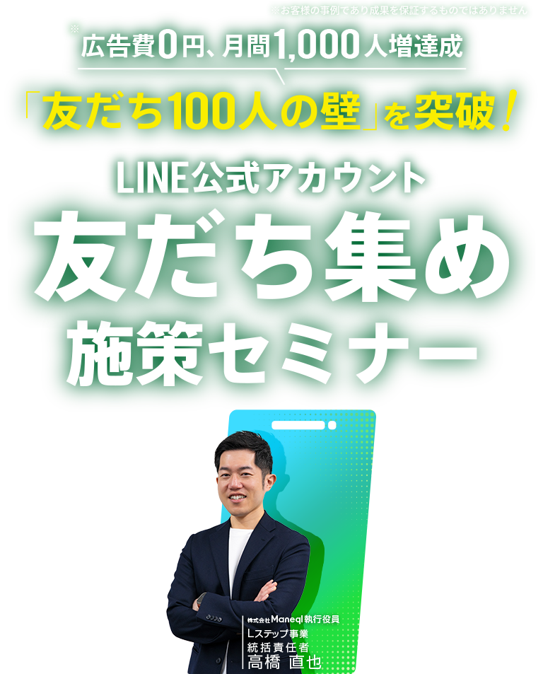 そこで本セミナーでは、この「友だち集めの型」を、具体的な事例とともに、ステップバイステップでお伝えします。