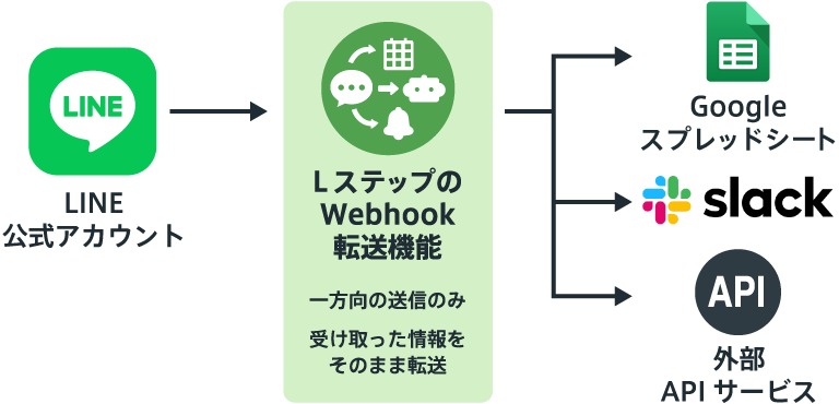 これまでLINE公式アカウントとLステップ間のみだった連携が、Webhook転送機能により、複数の外部ツールとの柔軟な連携が可能になりました。