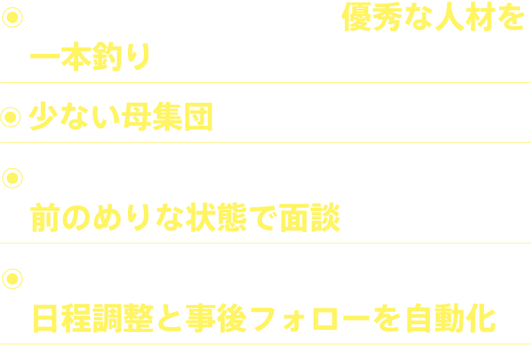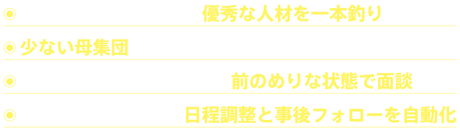 | 限りある採用の予算を有効に活用することにより、少ない母集団からでも高い歩留まりで良い人材の獲得を実現できます。 |